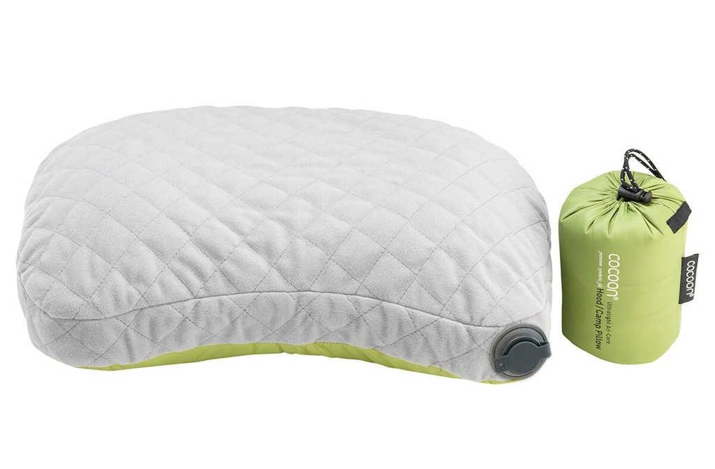 Le Air-Core Hood/Camp Pillow Ultralight de Cocoon est un oreiller de voyage possédant une chambre pneumatique gonflable, protégée dans une housse amovible qui apport douceur et confort. Une fine couche de rembourrage en fibre synthétique se trouve à l’intérieur, elle apporte un moelleux à l’oreiller et une petite isolation.