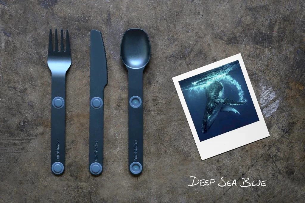 L’idée de la marque en proposant ce produit et d’avoir toujours des couverts avec soi pour éviter d’en utiliser des jetables qui finissent en partie dans les océans. Le Magware est livré avec une housse de rangement en polyester recyclé.