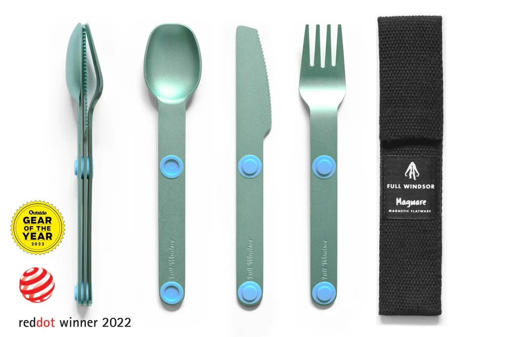 Le Magware de la marque californienne Full Windsor est un ensemble de couverts : couteau, fourchette et cuillère. Littéralement “vaisselle magnétique”, il s’agit d’un jeu de couverts qui sont reliés entre eux par un système magnétique. Ils sont ainsi faciles à regrouper et à ranger.