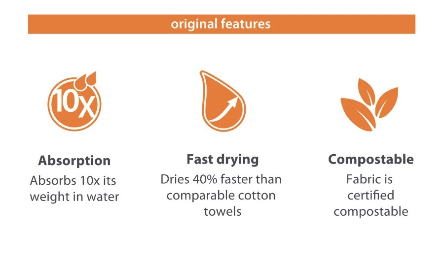 A base de fibres biodégradables pour un séchage rapide et efficace, la serviette Original s’adapte à toutes les situations ; les fibres qui la constituent permettent un toucher toujours aussi doux après chaque lavage.