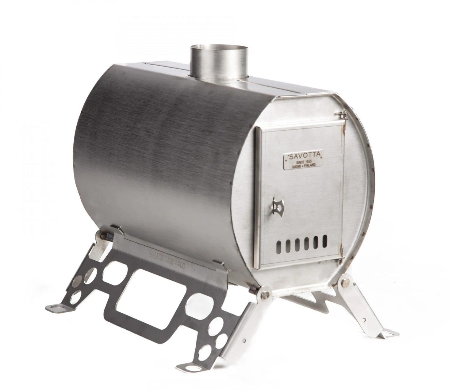 Le Savotta Hawu 400 est un poêle à bois compact et fonctionner pour chauffer la tente Savotta Hawu et cuisiner. Bien conçu, le Hawu 400 brûle le bois proprement grâce à son excellent flux d’air. L’air frais est aspiré au niveau des deux extrémités. L’ai secondaire est préchauffé vers la partie supérieure via un conduit dans la porte.