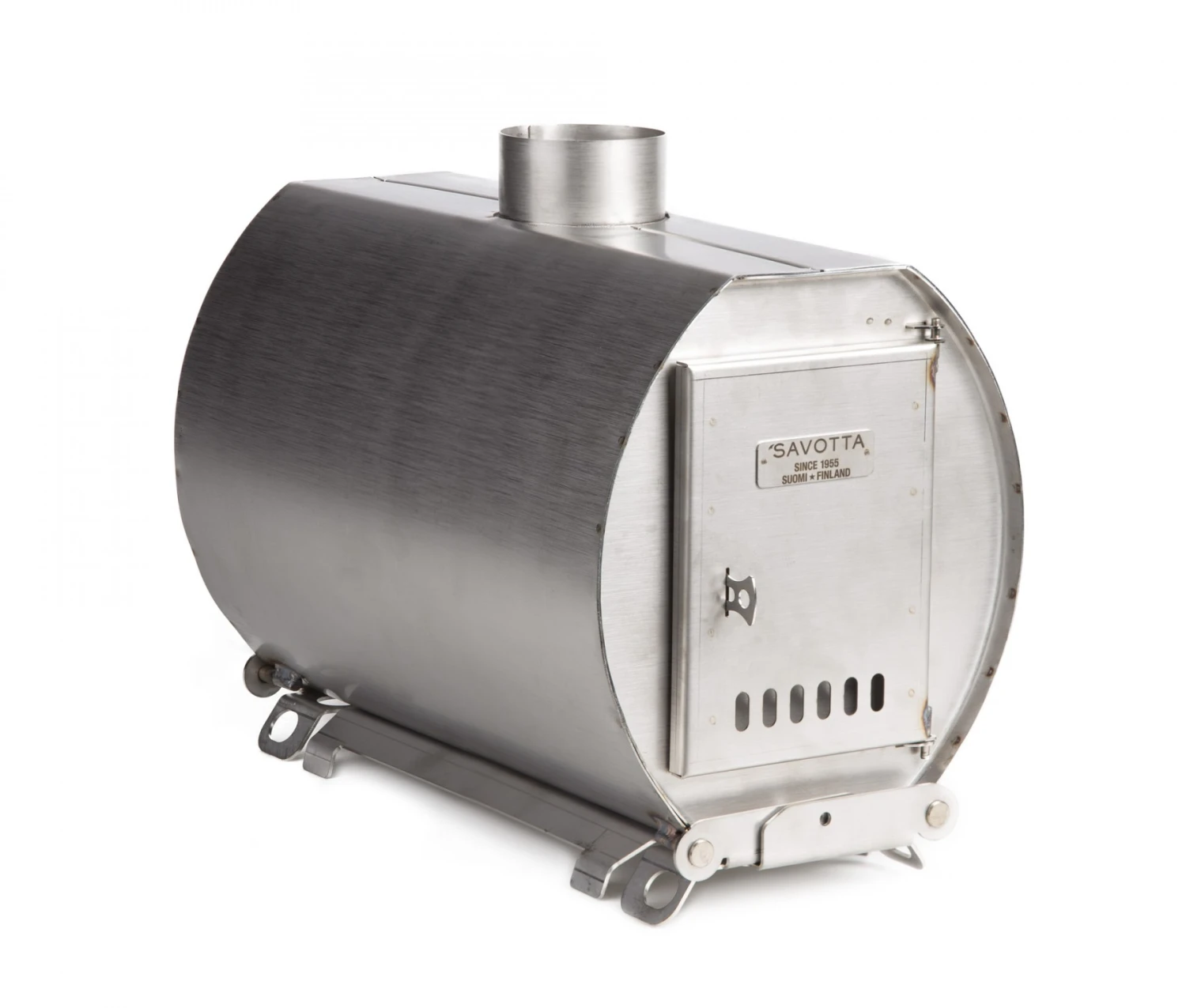 C’est le plus léger des poêles à bois du fabricant finlandais Suédois. Sa forme le rend extrêmement résistant aux déformations liées à la chaleur. Le dessus du poêle à bois peut être utilisé pour la cuisson et pour faire bouillir de l’eau. La conception des pieds est astucieuse : pieds repliables et conçus de manière a être bien stables sur tout types de sols. Ces pieds servent aussi de poignées permettant de bien prendre en main le poêle afin de le vider.