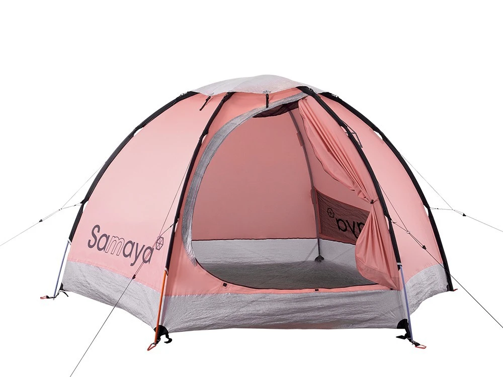 La Samaya 2.5 de la marque française Samaya Equipment est une tente révolutionnaire prévue pour deux personnes et demie, ou plus concrètement de la place pour l’équipement. Il s’agit d’une mono-paroi équipée d’une membrane laminé 3 couches Nanovent, un tissu imper-respirant comme pour les vestes imperméables. Elle dispose d’une imperméabilité équivalente à une colonne d’eau de 10 000 mm et d’une respirabilité de 40 000 g/m²/24h. En utilisant cette technologie, Samaya se débarrasse de la mauvaise réputation de la tente mono-paroi, synonyme de condensation.