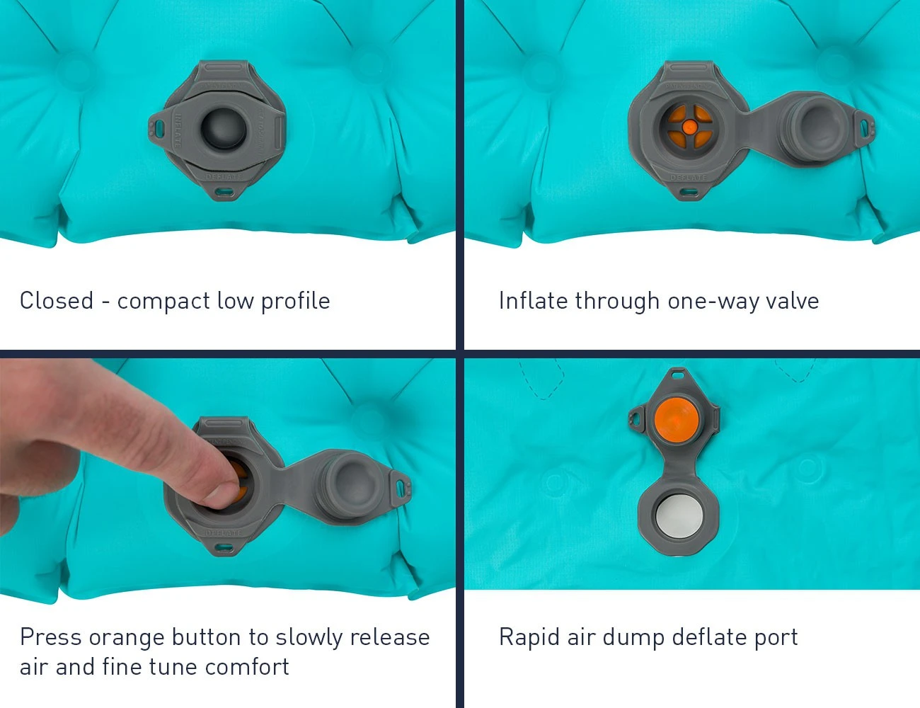 Le Comfort Light Insulated est pourvu d’une valve de gonflage/dégonflage très efficace qui facilite grandement son gonflage. Le matelas est livré avec le sac de rangement et de gonflage Airstream Pumpsack.
