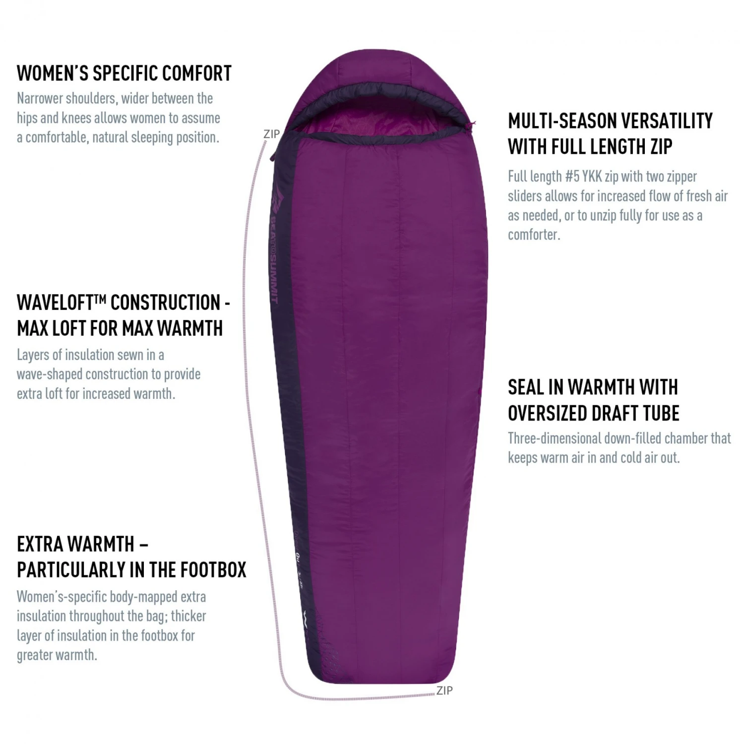 Le Quest QuII de Sea To Summit est un sac de couchage conçu spécialement pour les femmes. Il s’agit d’un couchage doté d’épaisses couches d’isolation en fibres synthétiques Waveloft. Le Quest QuII a plus de garnissage au niveau des pieds, limitant ainsi la sensation de froid. Ce sac de couchage offre une température confort de -1°C, si bien que vous pourrez l’utiliser durant 3 saisons : au bivouac en montagne, nuitées en refuge…