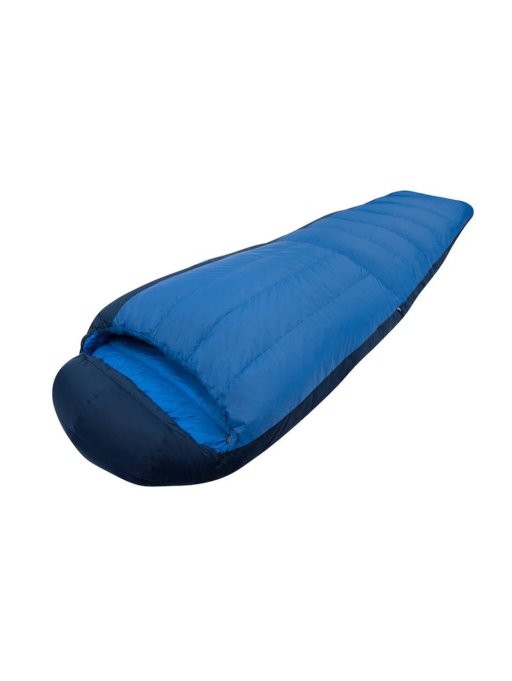 En terme de garnissage, le Trek TKI est doté de 350 grammes (Taille Regular) de duvet de canard 650+ 85/15. Ce duvet de canard de qualité est traité contre l’humidité (Ultra Dry Down) lui assurant un bon pouvoir gonflant. L’enveloppe interne et externe est conçue en nylon 20D et 30 deniers.