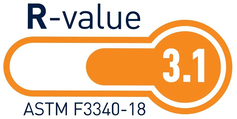 Grâce à ces technologies, la R-Value atteint la valeur de 3.1 (avec la nouvelle norme ASTM F3340-18), ce qui permet de l’utiliser sur un large spectre de températures.