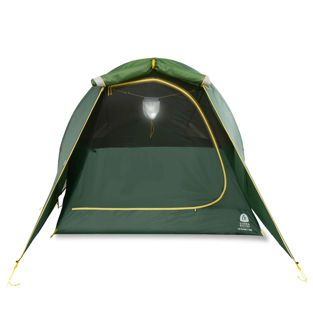 La Clip Flashlight 3000-2 de Sierra Designs est une tente double-toit, prévue pour 2 personnes et un usage 3 saisons. Cette tente de randonnée légère est idéale pour 2 randonneurs mais s’avère aussi très confortable pour une personne, d’autant que le poids total est contenu : 1860 g.
