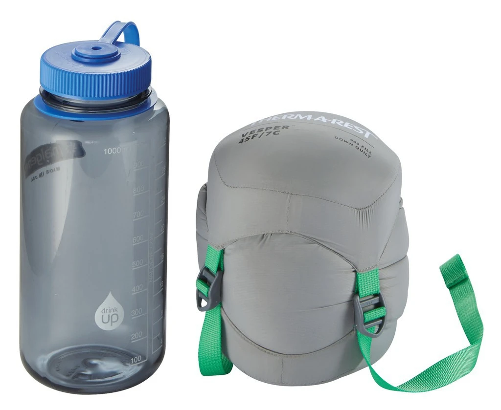 Le Vesper 45F/7C Quilt de Thermarest est un système de couchage minimaliste pour l’été. Il dispose d’une température de confort de 11°C. Il peut être aussi utilisé en complément de votre sac de couchage pour un apport de chaleur supplémentaire. Il est dépourvu de capuche, de collerette et n’a pas de garnissage dans le dos, c’est votre matelas de sol qui servira d’isolant.