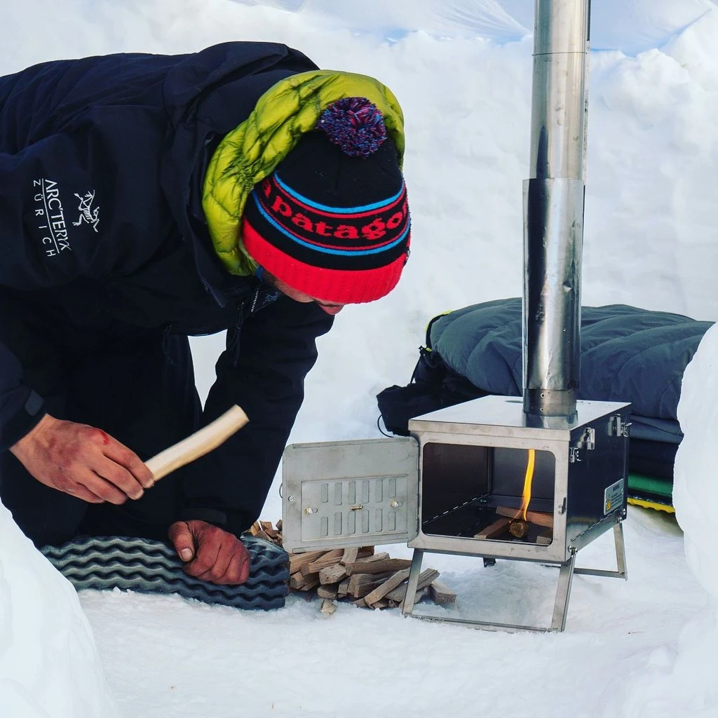Le Fastfold Titanium Camping Stove de Winnerwell est un petit poêle à bois nomade. Réalisé entièrement en titane, il est très compact et léger. Il peut facilement être transporté lors de randonnées hivernales ou être utilisé pour un camp de base. Il est compatible avec les tentes et les tipis disposant d’une ouverture pour un conduit de cheminé (Ø 8 cm) et mesurant moins de 2,80 mètres de haut. Le conduit doit dépasser de plus de 25 centimètres minimum.